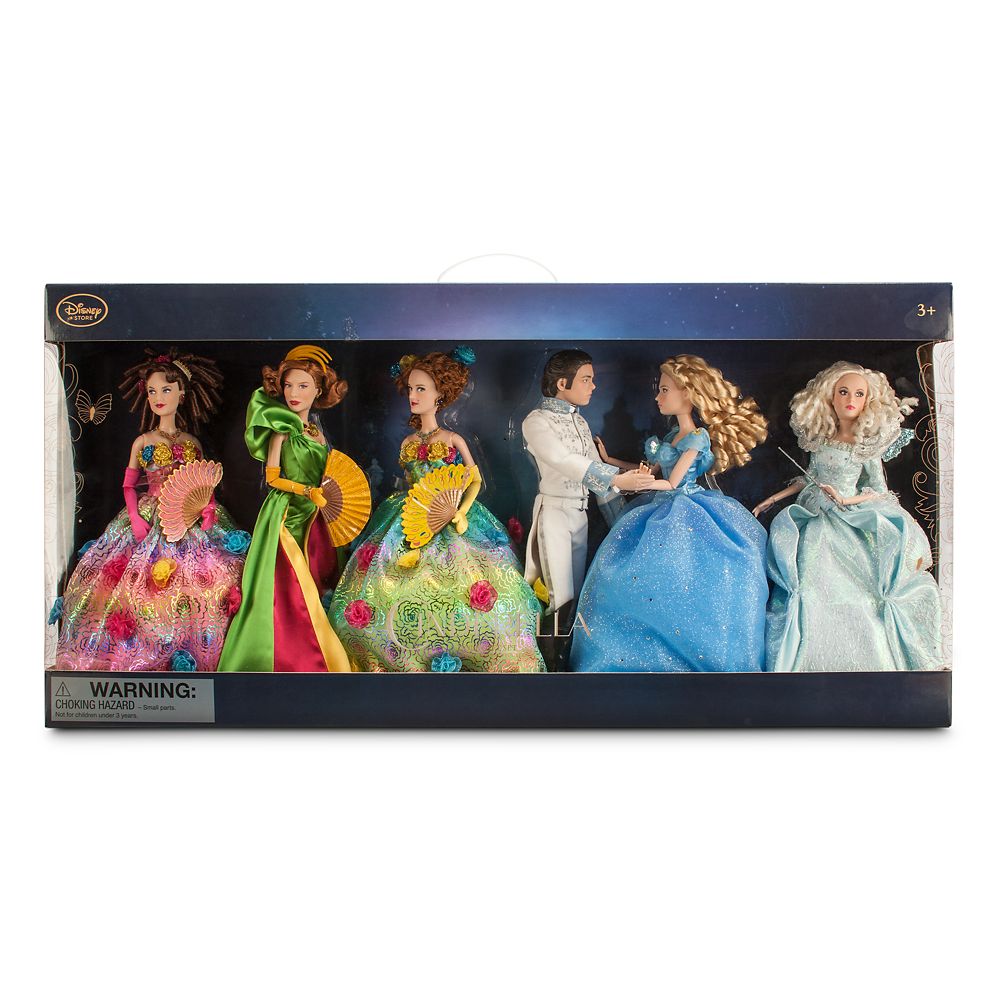 Si tratta di un gift set che comprende le bambole di tutti i personaggi: Cenerentola, il principe Kit, la Fata Smemorina, lady Tremaine e persino le inedite sorellastre Anastasia e Genoveffa con il loro abito da ballo.