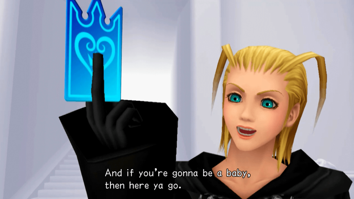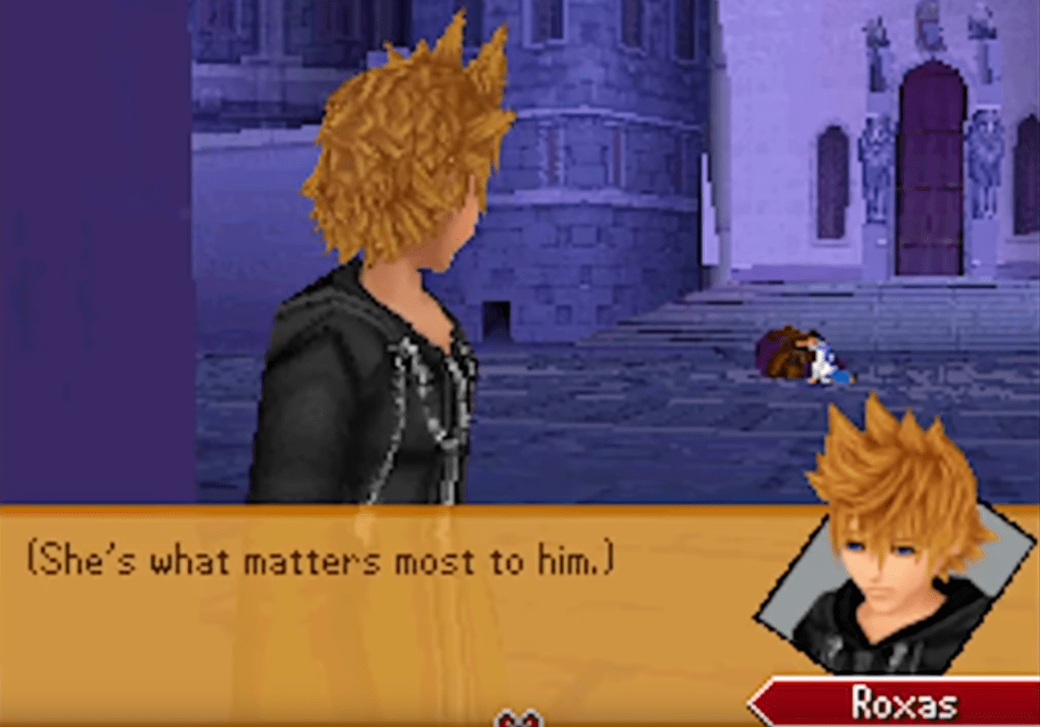 Ebbene, quando in Kingdom Hearts Sora è diventato accidentalmente un Heartless per risvegliare il cuore di Kairi, in quel preciso istante ha creato anche il proprio Nessuno, Roxas. Rispetto a quanto detto in precedenza, Roxas presenta delle caratteristiche peculiari: non sembra avere alcun ricordo della sua vita passata e, non meno importante, fisicamente non ricorda affatto Sora, bensì risulta molto simile a Ventus. Conoscendo cosa accade nel finale di Birth by Sleep, il motivo di quest’anomalia è presto spiegato dalla presenza del cuore di Ventus in quello di Sora.