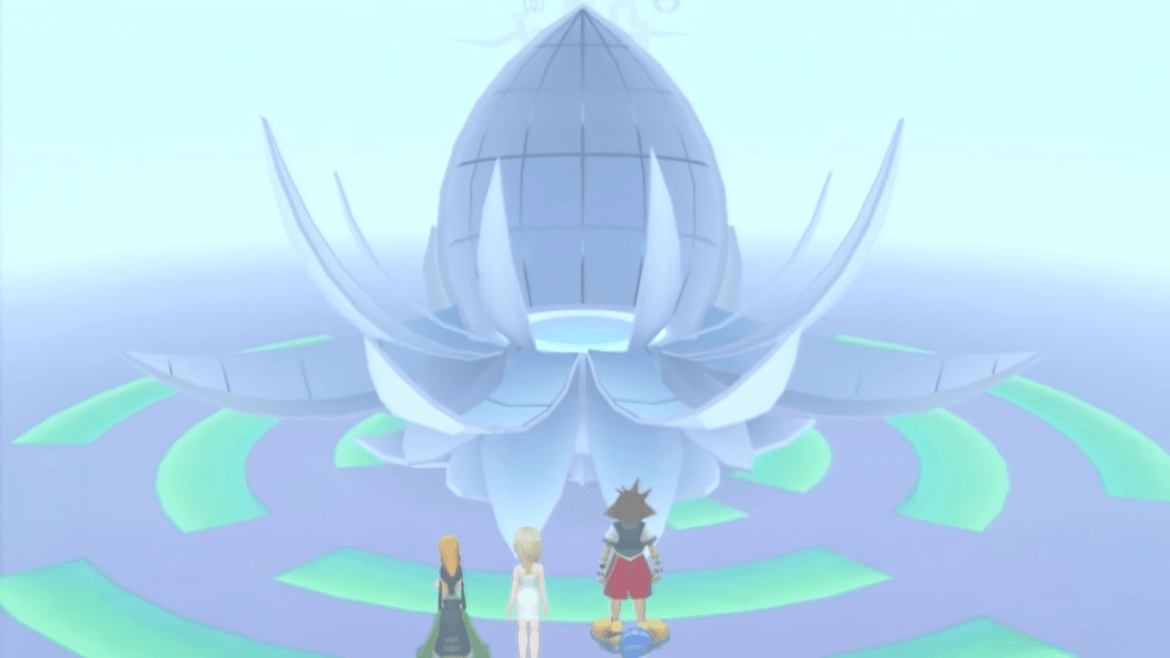 A questo punto rivediamo DiZ e Naminé mentre discutono davanti alla capsula contenente Sora. Capiamo che i due stanno tenendo d’occhio le mosse dell’Organizzazione e, in particolare, i movimenti di Xion e Roxas. Naminé sembra al corrente dei problemi che la giovane sta riscontrando nell’ultimo periodo e sembra conoscerne anche la causa: in quanto Nessuno di Sora, Roxas sta involontariamente facendo da tramite tra l’Eroe del Keyblade e Xion, permettendo a quest’ultima di impadronirsi di alcuni dei ricordi più importanti di Sora. Questo processo sta rallentando anche la rigenerazione della memoria del giovane Custode e l’unica soluzione a tutto ciò è che Xion e Roxas spariscano.