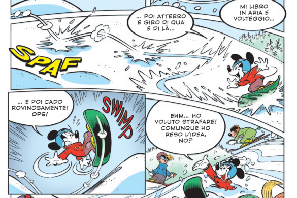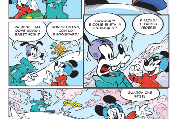 Oltre alla Winter Sport Collection, il numero 3663 di Topolino – già disponibile in edicola, fumetteria e sul sito dell’editore modenese – darà spazio agli sport invernali con la storia Pippo campione… freestyle, scritta da Rudy Salvagnini e disegnata da Carlo Limido. Anche la splendida cover “innevata” del settimanale, realizzata da Corrado Mastantuono, con protagonisti Topolino e Minni in seggiovia, è un omaggio all’evento sportivo oltre che al periodo.